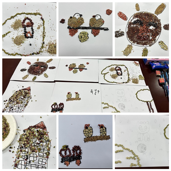 经过家长和孩子们的巧手创作,一幅幅充满童趣、创意独特且散发着自然气息的“草种创意画”跃然纸上。孩子们兴奋地展示着自己的作品,每一幅都独一无二,生动展现了他们童真视角下的世界以及对绿色生命的直观理解。
