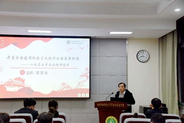新澳门六合彩内部资料 邀请校团委副书记、马克思主题新澳门六合彩内部资料 穆军全教授作了题为“开启全面建设社会主义现代化国家新征程”的十九届五中全会精神宣讲报告,穆军全教授从大会的概况、大会召开的时代背景和重大意义以及全会内容重点解读三个部分作了详细的解读。讲到全会内容时,他详细为在座师生解读了基本实现社会主义现代化的9个远景目标和“十四五”时期的12个工作要求。穆教授的报告主题鲜明、内容丰富、深入浅出,同学们表示,对党的十九届五中全会主要精神、重要意义有了更全面的学习掌握,今后要用习近平新时代中国特色社会主义思想武装头脑、指导实践、推动工作。