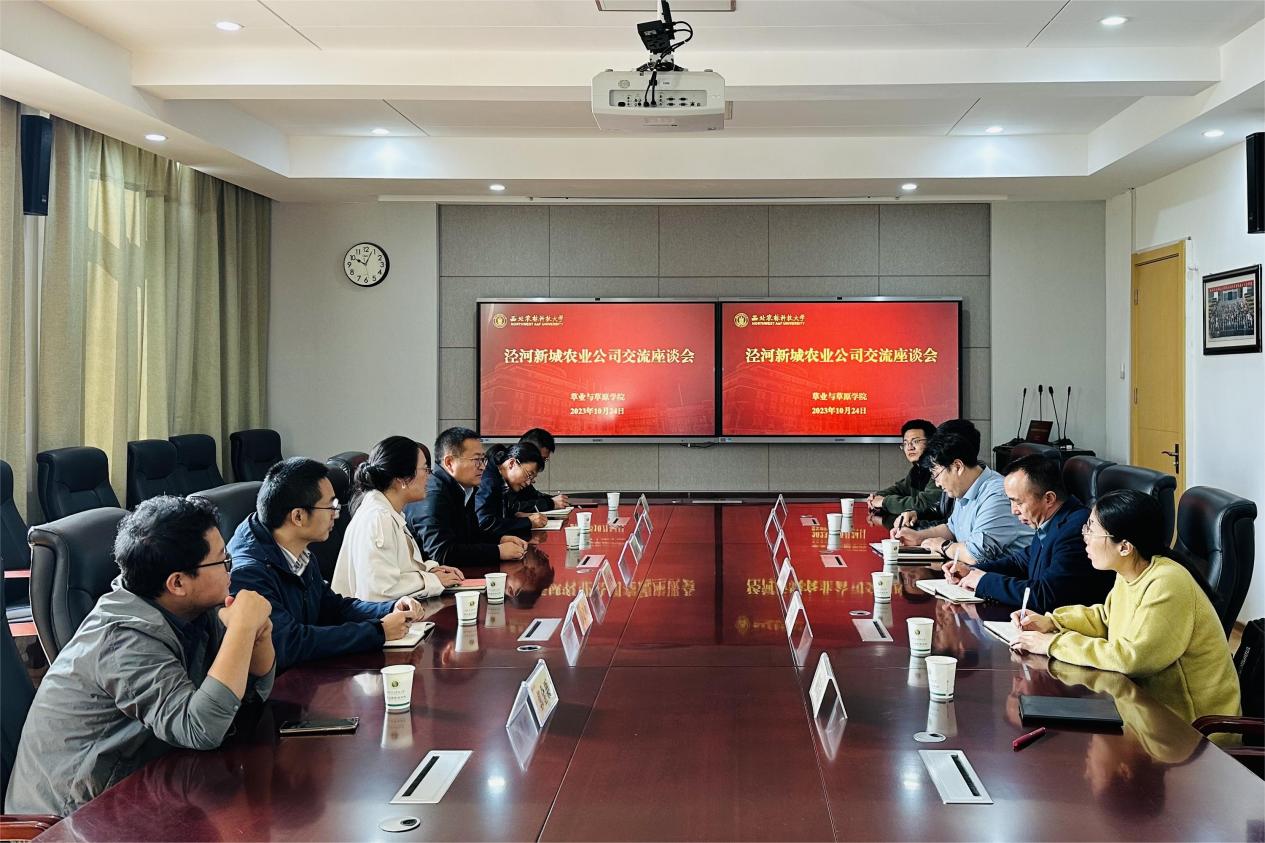为进一步推动校企合作,加强草业科技的创新和转化,10月24日泾河新城农业公司总经理高正虎,半亩方塘农业科技有限公司总经理李秀梅一行来新澳门资料 就校企合作、实习就业等方面展开了深入交流。新澳门六合彩内部资料 副院长(主持工作)杨培志、副院长温仲明、许岳飞副教授,曹玉曼副教授等6人参加了座谈会。
