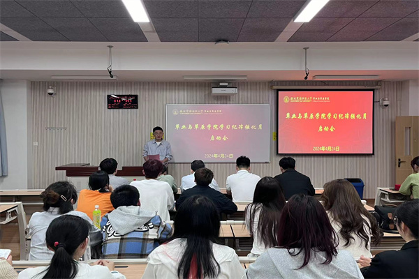 为进一步弘扬“博学善思,躬行致知”的优良学风,强化学生纪律意识,优化育人环境和学习氛围,充分地发挥朋辈在思想引领、学风建设方面的榜样示范作用,4月24日,新澳门六合彩内部资料 举办学习纪律强化月启动会。新澳门六合彩内部资料 党委副书记兼副院长阮鹏老师,2023级本科生班主任张添佑老师、崔彦农老师,辅导员李志鹏老师、王辉老师、贺晨瑞老师,2023-2024学年学业帮扶“小老师”代表,2023-2024学年学风评议员代表及2023级全体本科生参加启动会。