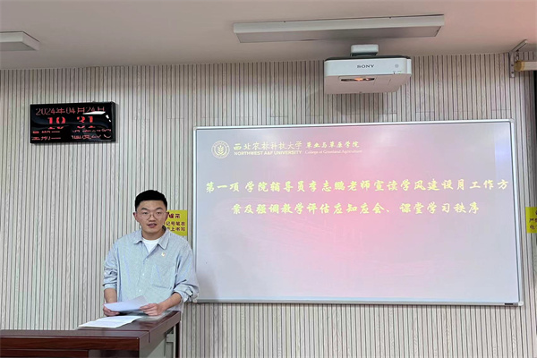 会上,新澳门六合彩内部资料 辅导员李志鹏老师宣读学习纪律强化月工作方案并强调本科教育教学评估应知应会。