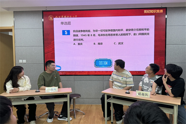 在比赛过程中,考题聚焦党纪知识、四史常识等相关内容,分为必答题、抢答题、和风险竞答题3个环节进行。在紧张激烈的角逐中,参赛选手们冷静思考、认真作答,积极拼手速、拼脑力,充分展现了深厚的党纪知识储备和显著的党纪学习效果。