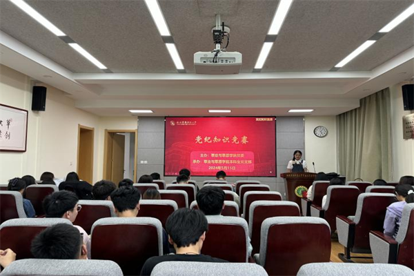 为深入贯彻落实党中央关于党纪学习教育的部署要求,进一步加强党员纪律意识,推动新修订的《中国共产党纪律处分条例》学习宣传和贯彻执行,5月15日,新澳门六合彩内部资料 党委举办党纪知识竞赛。新澳门六合彩内部资料 党委书记苏蓉、全体辅导员、各学生党支部党员、发展对象参加活动。